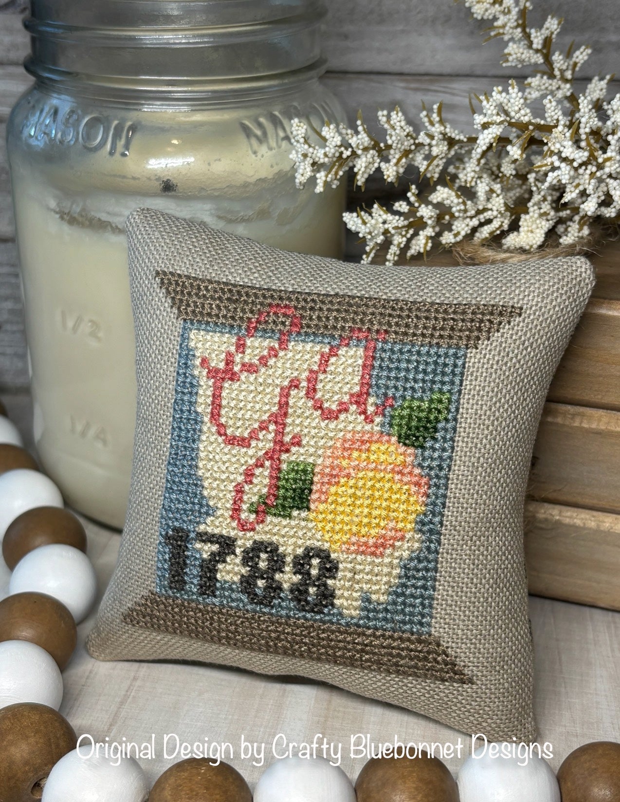 "Georgia State Spool" is part of our State Spool Series. Most of us have a charm bracelet with a collection of charms that carry treasured memories for each charm. We created this series to add stitching charms to our creative space and celebrate our adventures throughout the United States.