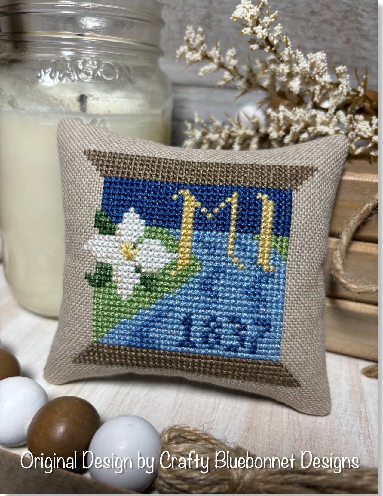 "Michigan State Spool" is part of our State Spool Series. Most of us have a charm bracelet with a collection of charms that carry treasured memories for each charm. We created this series to add stitching charms to our creative space and celebrate our adventures throughout the United States.