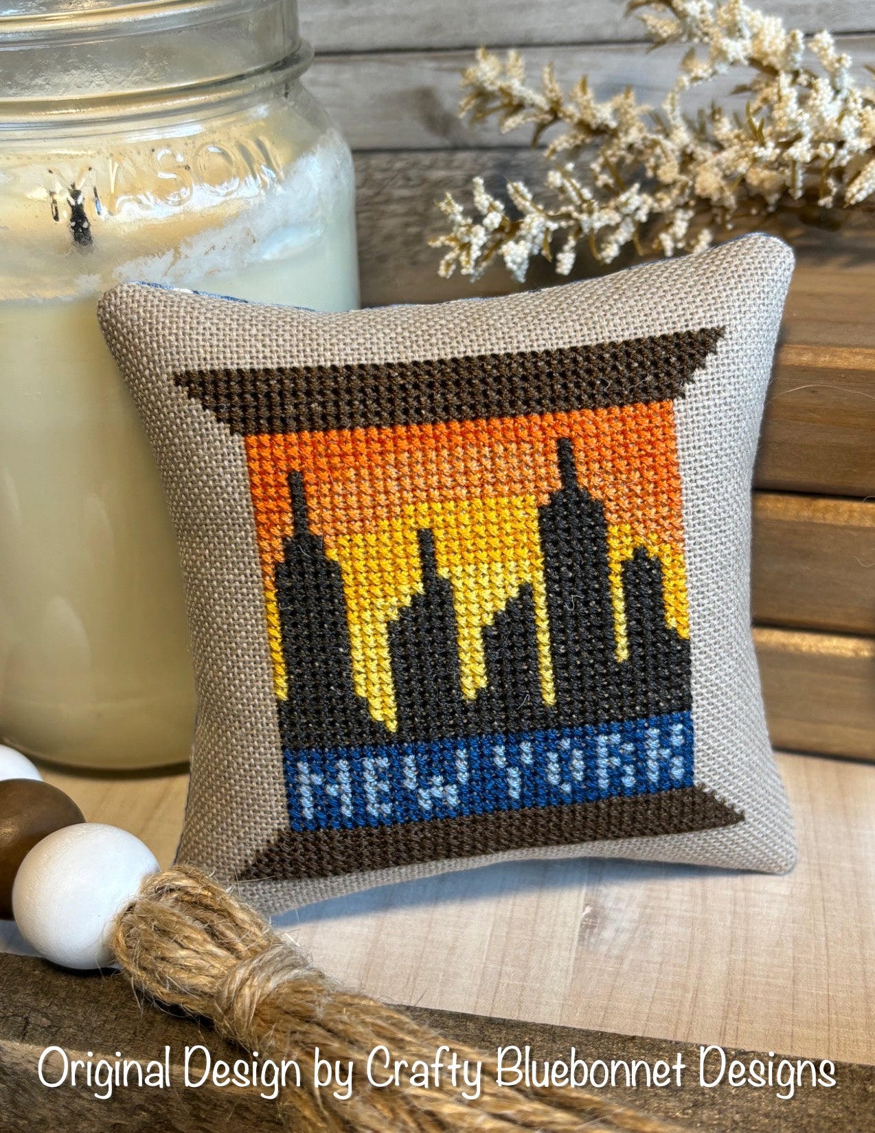 "New York State Spool" is part of our State Spool Series. Most of us have a charm bracelet with a collection of charms that carry treasured memories for each charm. We created this series to add stitching charms to our creative space and celebrate our adventures throughout the United States.