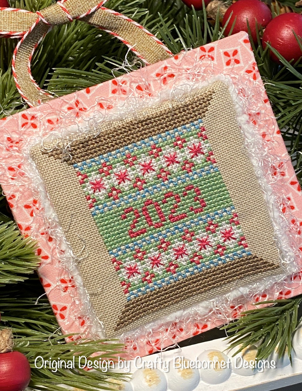 "Vintage Christmas 2023 Ornament" is sure to add an additional pop of color to your vintage Christmas decor. Pattern includes two different color placements for you to choose from.